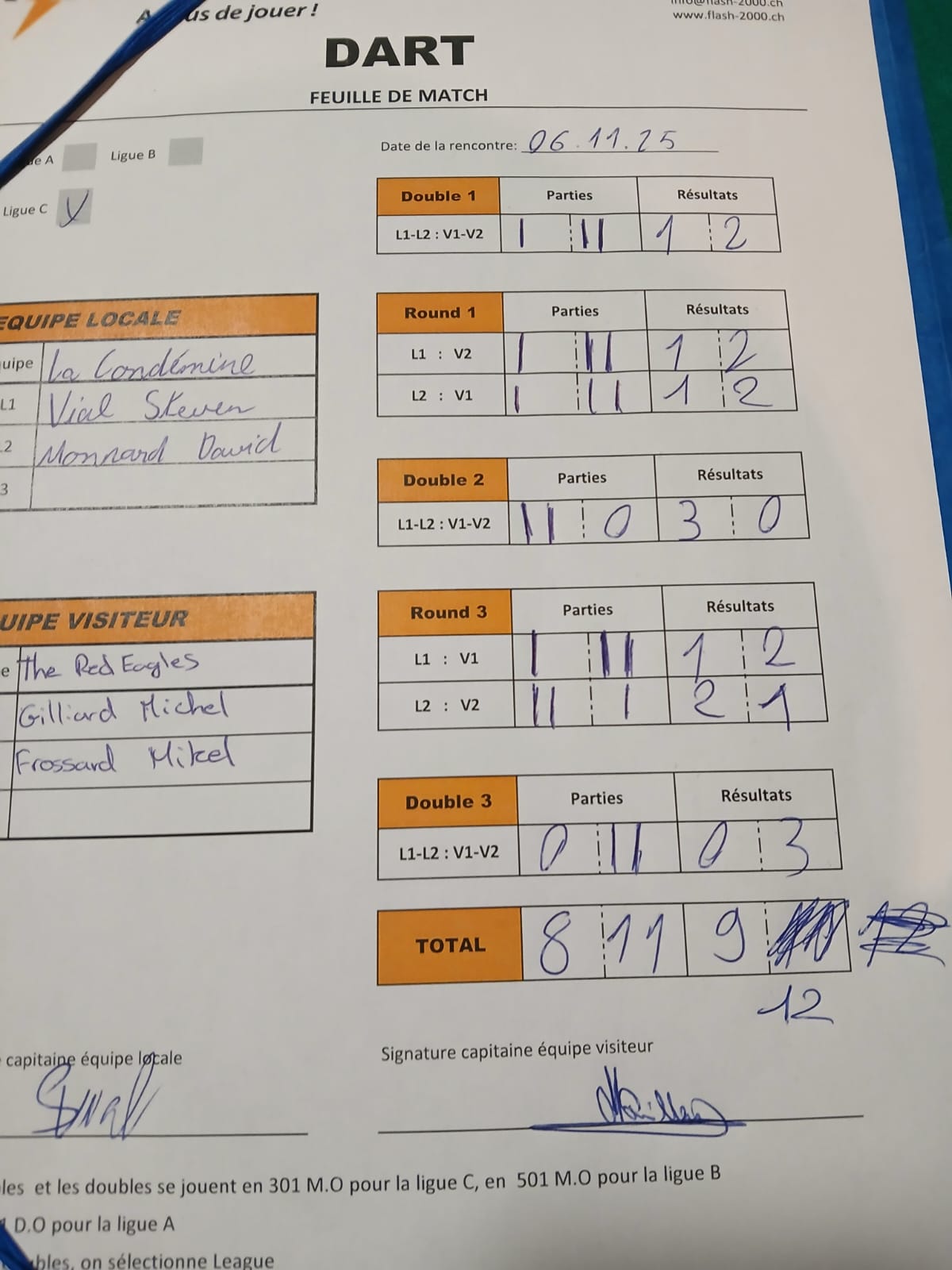 Equipe visiteur
