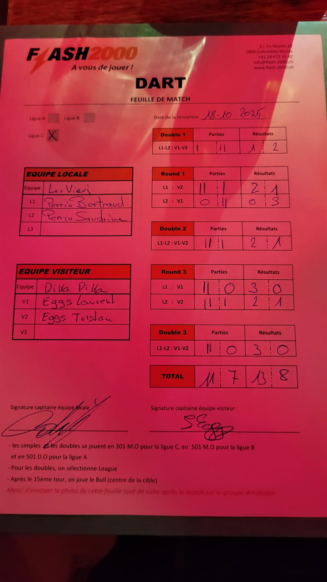 Equipe visiteur