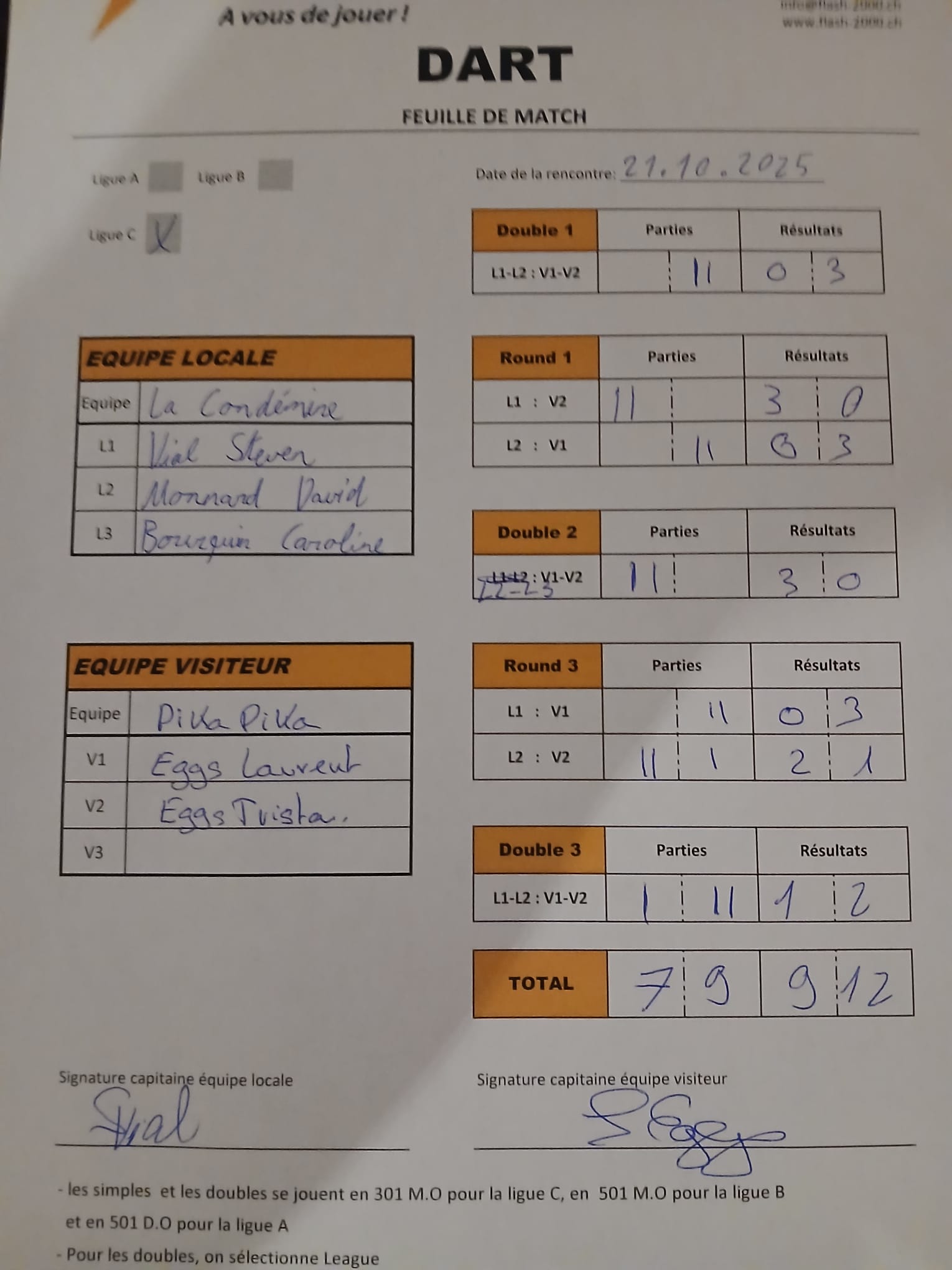 Equipe visiteur